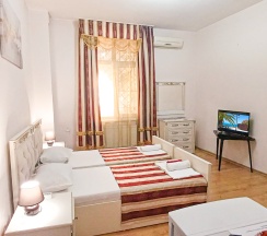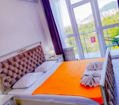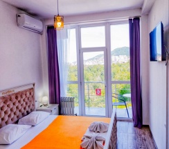 Номер чистый ,уютный,просторный вид шикарный в общем ещё раз вернёмся и советую своим друзьям так как всё рядом и море и остановки и магазины👍👍👍👍👍