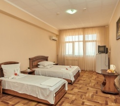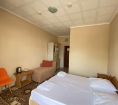 Большой минус расположение отеля рядом речка вонючка Уч-дере на пляже ротавирус понимать на раз два. Администрация хорошая идут на встречу. Был первый раз тут, столовая нормальная выбор большой средний ценник на троих взрослый и 2 ребенка 1500 р. по вкусу еда не однозначная салаты не солят совсем (на вкус и цвет соли сам) мясо по мне так пересолено, вообще как повезет. Раз попалась испорченное протухшее блюдо, поменяли и извинились. Персонал вежливый. В номерах убирают постоянно тут придраться не к чему. Мне показалось что Лоо армянский район тут одни армяне. Из за расположения отеля больше сюда не поеду мне показалось что Лол это одна сливная яма, где серим там и плаваем. Ходили на пляж подальше от глобуса и заранее пропили лекарства от ротавируса и все равно проболели и вычеркнули пару дней отпуска.