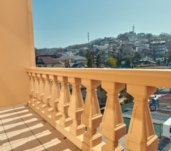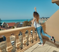 Взяли номер с видом во двор, тишина. На балконе завтракали, кайф. Есть всё нужное, даже посуда