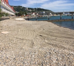 В самом санатории не были. Пользовались только пляжем. Пляж хороший, галечный, вход в воду пологий, местами камни.