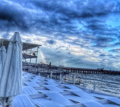 Приезжаем зимой и летом. Санаторий находится в 10 метрах от моря, из окна прекрасный вид на море и горы.