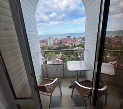Отличный номер с балконом, видом на бассейн и море! Завтрак и ужин были включены и очень хорошие, бассейн классный, теплый, всё понравилось! Проход к отелю в горку, но она не длинная и не слишком крутая, остановка общественного транспорта поблизости.