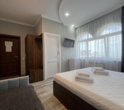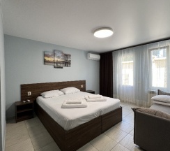 - уютные двухместные номера от 5500 рублей в сутки; для большой семьи есть двухкомнатные люксы с балконами;