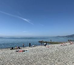 - пляж общественный, поэтому людей много, а шезлонги — платные;