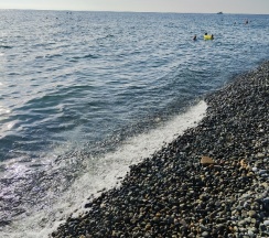 Для информации: обязательно возьмите аквашузы, так как на пляже не галька, а крупные камни.