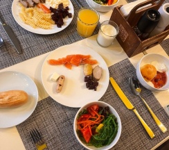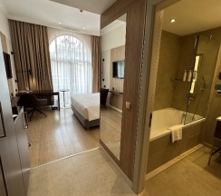 При заселении учли наши пожелания ввиду дня рождения (также поздравили пирожным и открыткой). Был шикарный вид из номера. Есть свой подземный паркинг. Рекомендую этот отель. Спасибо вам!