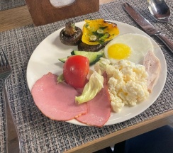 Останавливался с женой в этом отеле 23.09.25 г. Нам очень понравилось, это лучший вариант по "цена-качество". Бронировали через Озон, вышло дешевле, чем обычно. Шикарный вид, горный воздух. Очень удобное расположение прям в центре Красной поляны: магазины, кафе, канатная дорога в 50 метрах от отеля (подъем до высоты 960м постояльцам отеля бесплатно), остановка общественного транспорта тоже рядом, станция Роза Хутор в 10 минутах пешком. В номере чисто и уютно, с номера открывается шикарный вид, мыльно-рыльные предоставляются, также комплиментарно предоставляют чай/кофе/воду каждый день при уборке номера (плюс на каждом этаже есть кулер с водой); кровать и подушки очень удобные, я прям выспался. Сотрудники отеля очень вежливые и доброжелательные. А завтраки по системе шведского стола это просто сказка: все очень вкусно и главное качественные продукты. Если уж прям сильно придираться, добавлю ложку дёгтя, то это "усталость" номеров. Видно, что отель далеко не первый год принимает гостей, и проглядываются косячки от неуклюжих постояльцев, в первую очередь, в туалете (пятна, царапины, коцки всякие и т.п.), но по сути ни на что не влияет. Кстати, еще также включено посещение сауны и спортзала (не посещал, так как не хватило времени). В общем ставим твердую пятерку и если в планах будет посещение Красной поляны вновь, то выберем именно этот отель. Спасибо, вы молодцы!