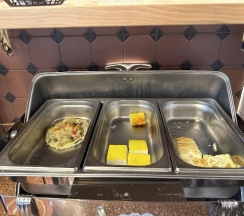 Шведская линия (в ресторане Сибирь при отеле) порадовала наполнением 🤤 Завтраки сбалансированны, есть и плотные блюда и легкий перекус, и плюшки к чаю, и кофемашина с неплохим выбором. Все свежее, вкусное, горячие блюда-горячие. Вежливый персонал, все быстро дополняют, если что-то закончились.