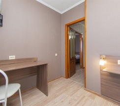 В комнате есть необходимый минимум- полотенца, тапки (лучше взять свои, эти понарошечные), гель-шампунь-мыло одноразовые, мыло жидкое в достаточном количестве, полотенца, фен, стакан-тарелка-чайная ложка. Большой телевизор. Маленький холодильник с низким уровнем шума (совсем не замечала как он работает).Удобства в номере. По площади номерок небольшой, но комфортный. Кровать двуспальная, но не king-size, матрац-одеяло-подушки всё хорошего качества, не изношенное-не скомканное-не продавленное. Постельное белье новое и не застиранное.