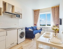 Первое,что бросается- очень уютно. Второй приятный момент — идеальная чистота. Всё блестит, постельное белье свежее, полотенца пахнут чистотой. При бронировании было указано проживание на трех человек. При заселении не обратили внимание на количество наборов постельного белья. Только в 11 часов ночи обнаружили, что не хватает одного комплекта. Написали хозяину. Были удивлены, через 30 мин курьер принес комплект. Работают оба телевизора и быстрый Wi-Fi, что сейчас не мало важно. Мы остались довольны, что обратильсь в Апартаменты Петровские. Рекомендуем для проживания.