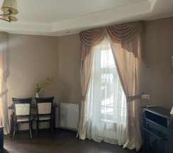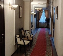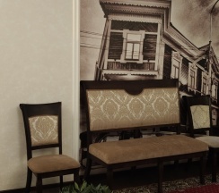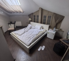Взяли на 2 ночи 16-18 сентября в этом отеле люкс N 3, этаж считается первым, но ниже нас кафе в полуподвале "Хачапури Марико" неплохое, так что этаж почти второй. Двухкомнатный номер был нужен , и нас он вполне устроил.Выбирала уже с учётом прочитанных отзывов про не очень горячую воду под вечер, мало посуды и нет полок для одежды в шкафу.Ко всему приготовилась и в общем, с учетом цены и специфики деревянного дома, осталась довольна и гостиницей и номером.