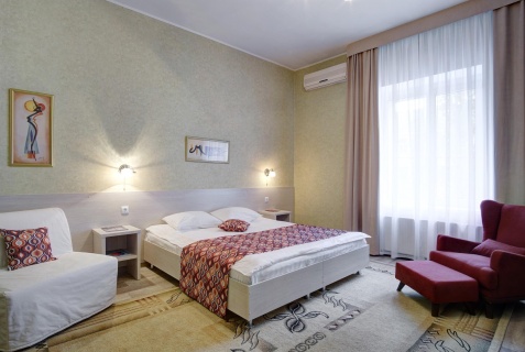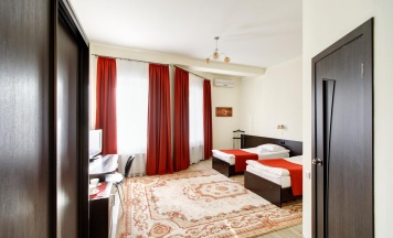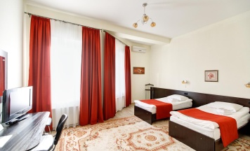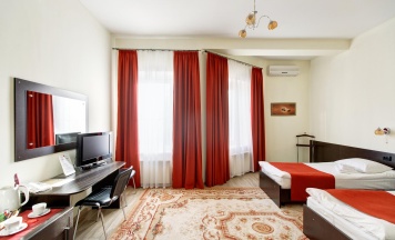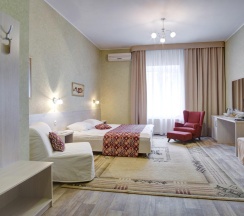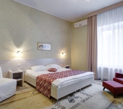 Комфортный двухместный номер: стандартный набор мебели, кондиционер, плазма, холодильник, спутниковое ТВ (более 130 каналов, в том числе на иностранных языках), номера оснащены душевой кабиной или ванной, набор одноразовых туалетных принадлежностей, электрический чайник, набор посуды, платный и бесплатный бар.