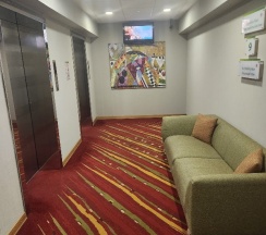 Вежливый ресепшн, разрешает оставлять чемоданы перед заселением/после выселения. Понравился спутниковый снимок Москвы на стене.