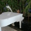В ванной комнате душевая, работает фен, раковина не низкая.
