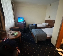 Номера не большие, но достаточно уютные. На этаже есть кулер, гладильная доска и утюг. Но мы были поражены тем, что бесплатное продление на мера до 16.00, за стоимость половины суток до 18.00, а если нужно до 22.00(как надо было нам), то уже надо заплатить за сутки. Это первый отель в котором так странно измеряется половина суток… и конечно же в ресторане при отеле цены сильно не демократичные)