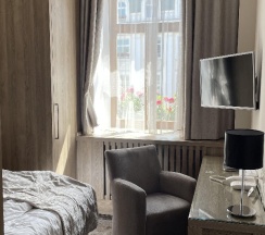 Отличные номера, вкусные завтраки (шведский стол). Есть сауна и бассейн. Удобное, нейтральное расположение между двух станций метро!