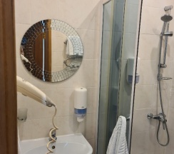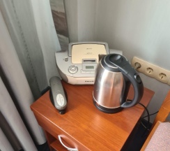 Всё что нужно для туриста, не Шератон конечно, но комфортно принять душ и поспать самое оно. Дешевле только квартиру снять, но там свои заморочки. Завтраки четыре варианта на выбор, в номере есть посуда, разогреть на кухне микроволновка. Чайник так же присутствует, телевизор в номере.