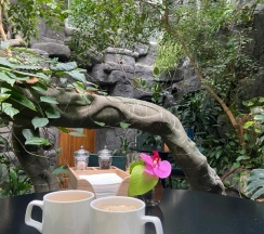 Отдельно хочу написать про зимний сад. Очень вкусная еда и шикарный интерьер, в который вложено очень много труда и души - живые тропические растения, водопад и живая черепашка! Обязательно будем останавливаться ещё в следующих поездках.