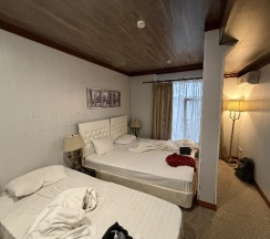 Вежливое и внимательное обслуживание на ресепшен. Номера убирали плохо, но видимо это связано только с одной персоной, которая никак не реагировала на сделанные замечания и продолжала оставлять пыль на полу и мебели. Перед отъездом, видимо убрала другая смена, я видела других людей и все было очень чисто. стены тонкие, слышимость высокая, но на замечания гостей о шуме на ресепшен реагируют и принимают меры. Халата в номере не оказалось, но выдали по запросу, также как и второе одеяло, было прохладно и отопления ещё не было. До Пятёрочки не дотягивает, потому что все старое, мебель, ковролин. А в целом, мне понравилось. Тихий спокойный район. Останавливалась на неделю и в принципе, довольна