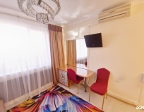 Отличный отель. В номере было все необходимое: телевизор, холодильник, набор полотенец, тапочки, гели шампуни. Бронировали номер с гидромассажной ванной. Все супер. Спасибо большое администрации!