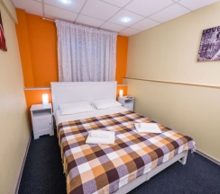 Уютный номер (13 кв. м.) с двуспальной кроватью. В номере отдельный санузел с душевой кабиной, шкаф для одежды, стол для работы, LCD-телевизор с USB-входом, мини-сейф, чайник.