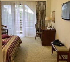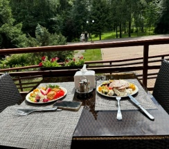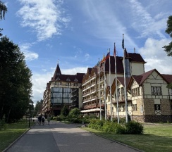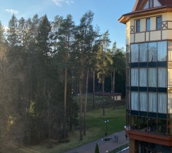 Из явных плюсов: вежливый персонал, достаточно вкусная еда для взрослых и детей, есть "авторская кухня", красивая и достаточно большая территория. Шторы блек аут. В комнате был балкон со скамейкой. 6 видов саун.