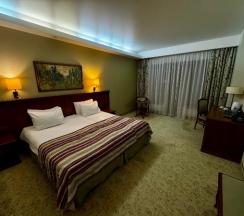 Думаю, можно оставить отзыв. Мы жили в отеле Ареал с 3 по 6 августа включительно. Поскольку проживание пришлось на мой др, то была скидка 15%. Наш с мужем балл 4,5. 4 мало, 5 много. Из явных плюсов: вежливый персонал, достаточно вкусная еда для взрослых и детей, есть "авторская кухня", красивая и достаточно большая территория. Шторы блек аут. В комнате был балкон со скамейкой. 6 видов саун. Из минусов, которые испортили впечатление: актива вроде много, но будто и ничего интересного, нельзя ребенка до 5 лет никак и нигде оставить, нет няни. В номере нет холодильника, а в доступе в ресторане только напитки. Еда строго во время завтрака, обеда и ужина. Не было фруктов как перекус (только в основные приемы пищи). Мороженое только за доп плату. Прокат вроде есть бесплатный, но ни о чем. На караоке и бильярд есть 1 ч на комнату, но сложно попасть и записаться. В комнате было на удивление холодно, хотя кондиционер был выключен. Баня, хаммам и спа только платно. Не знаю, вернемся или нет. Вроде неплохо, но и не прям ах. На раз вполне можно. Контингент был деловой, пенсионеры и семьи с младенцами. Если ехать спать, есть и купаться, то норм. Мне не хватило актива. В целом вполне рекомендую. О поездке не пожалели. Но вот возвращаться или нет пока не понятно.