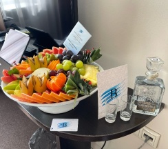 + Потрясающий завтрак. Всё было вкусно и аппетитно: яичница, сосиски, треугольные сэндвичи, чай-кофе-апельсиновый сок. Также были фрукты и сладости (в т.ч. пирожное на подобии тирамису), но их я не пробовал. А рулеты с красной рыбой и творожным сыром - просто балдёж!
