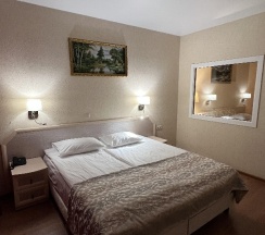 Проживали втроем в двухкомнатном номере. Приехали уже поздно вечером. Нас очень быстро зарегистрировали. В номере чисто, уютно. Удобная кровать, для ребёнка раскладной диван. В день отъезда у нас появилась необходимость сдвинуть выезд на попозже. Все продлили без проблем.