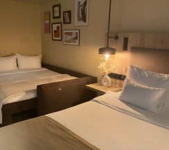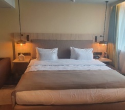 Отличный отель! Тут хорошие цены, бронировали заранее. При отеле есть кафе, бар, рестораны. Цены в них просто смешные, а порции огромные. Сами номера свежие, мебель новая, чистые и современные одним словом, однозначно рекомендую.