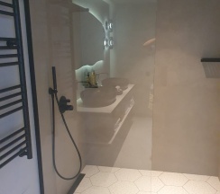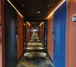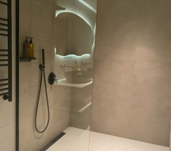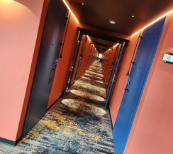 Парковка перед отелем не очень вместительная, но как я понял сзади есть еще, встретил приятный персонал все обьяснили показали. Красивые коридоры качественно сделано. Очень красивый номер, свежий ремонт в приятных нежных тонах. В номере было все необходимое. Из минусов в душе после 1-2 минут использования воды начинается потоп за пределы двери иногда даже в сам номер перетекает было не приятно заходить в ванную комнату полную воды не только в душе, причина как я думаю в малом уклоне плитки и грязнющем забитом сливе, это к слову видно.