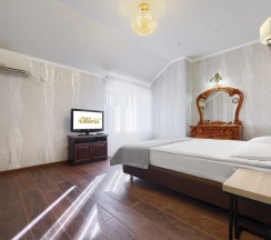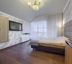 Мы создадим все условия для отдыха, который будет Вам необходим после насыщенного событиями дня. «Будьте, как дома», – скажем мы Вам, вручая ключ от одного из комфортабельных номеров нашей гостиницы. В каждом номере удобная кровать с ортопедическим матрасом, журнальный столик, широкоформатный ЖК телевизор. шкаф, вешалка для верхней одежды. В люксах в гостевой комнате находится раскладной диван, в спальне дополнительный ЖК телевизор. Ванная комната оборудована, современной качественной сантехникой.