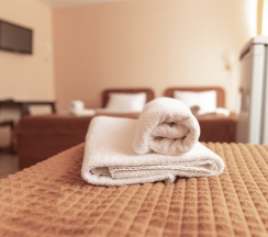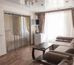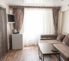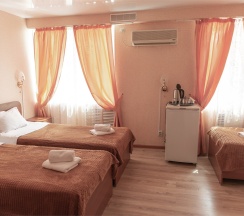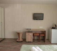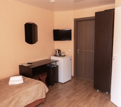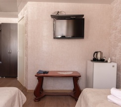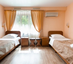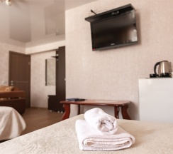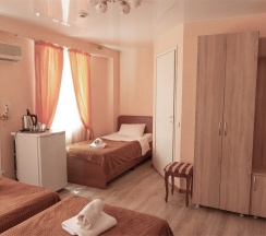 Гостиничный двухместный номер стандарта "полулюкс", отличается от номеров "стандарт" большей площадью, в номере два окна, вместо душевой кабины установлена ванна, дополнительно в номере установлена мягкая мебель. Данный гостиничный номер рассчитан на комфортное проживание 2 клиентов, с возможностью размещения до 5 гостей. Чтобы быстро забронировать гостиницу посетите страницу онлайн-бронирования или позвоните по одному из телефонов вверху сайта.