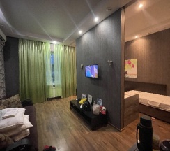 Были проездом семьей через Волгоград, выбрали данный комплекс, чтобы переночевать. Хороший номер, есть душ, туалет, холодильник, телевизор. Чистое постельное белье, интерьер интересный. Есть также отдельная кухня. Номер за четверых вышел 4200 руб. Нас все устроило, спасибо персоналу. Также можно сходить в спа и баню, если кому-то нужно, данный комплекс предоставляет услуги)