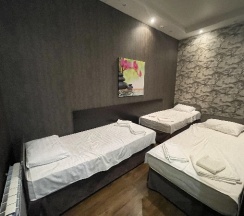 Провели одну ночь. Нам понравилось. Чисто, удобные кровати, в номере чайник и холодильник, есть общая кухонька.
