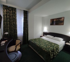 Пришлось достаточно долго пожить в гостинице. Удобное расположение: минут десять пешком до центра, минут пятнадцать до вокзала. У гостиницы свой закрытый паркинг, правда не очень большой. Завтраки однообразные, но сытные и обильные. WiFi от "Зелёной точки" есть и работает. На этаже диспенсер с холодной/горячей водой. Ночью немного слышно железную дорогу (мне нравится засыпать под звук поезда).
