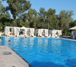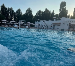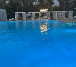 Приехали на отдых семьёй с детьми 24.05.25. Хороший номер, чудесный бассейн. Но есть огромное Но, непрерывно играет громкая музыка у бассейна. Как сказала администратор, работает диджей. На баре сказали, что музыка до 21.00. У меня через 30 минут уже заболела голова, невозможно разговаривать, расслабиться, не дозовешься детей. Перерывов нет, тише не делают, слышно возле домика. Мы приехали отдохнуть вдали от шума города, а приехали в клуб. Не всем нравится настолько громкая музыка, тише мы бы тоже слышали. Помимо этого, шум доходит до домика. И как сказали, так каждые выходные. То есть, мы больше не приедем
