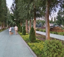 Ухоженная территория, несколько детских площадок, качели.