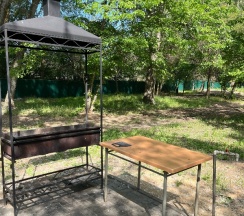 Удобная зона барбекю рядом с домиком.