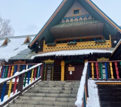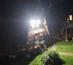 Читал отзывы))) Смешно. Как там можно потеряться? На домиках огромные цифры, все подсвечиваеться, одна тропинка. Комнаты нормальные, не 5 звёзд, но вы приехали смотреть город и наслаждаться природой и цена нормальная. Хороший ресторан (для жильцов скидка на ВСЁ 50%), дешевле и вкуснее ресторанов в городе. Завтраки включены: напитки, глазунья, сыр, колбаса, овощи, каша, сосиски...очень вкусный и сытный завтрак. Прокат лыж, коньков, настольные игры. Рекомендую, хочется приехать ещё раз. Единственный минус - это, слышимость в домике)