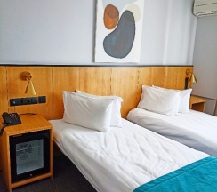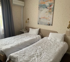 Уютный с хорошим расположением. Номер просторный. Ежедневно убирают. Персонал обученный, вежливый. Отдельный респект. При отеле есть столовая. Рекомендую для посещения.