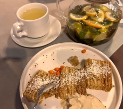 Мы пробовали стейки Рибай и Филе Миньон — это было просто восхитительно! Десерты собственного производства, такие как Наполеон и Медовик с домашним медовым мороженым, стали настоящим хитом нашего ужина.