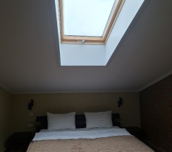 Из плюсов чисто, более менее. Мансардное окно не закрывается шторкой. Оценка ближе к - 4. В номере есть чайник, чашки, стаканы. Кулер на этаже. Ни одноразового пакетика чая,ни кофе. Это те мелочи которые формируют мнение. Для людей которые проездом, наличие минимума важно. Администратор правда запустила в номер чуть пораньше (мин на 20), единственный плюс. Вообщем информация такая.