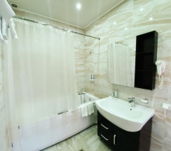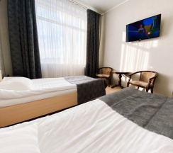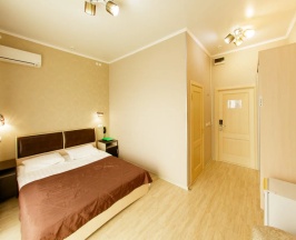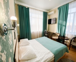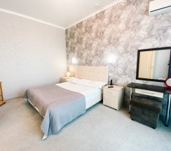 Одно/двухместное размещение с одной жилой комнатой, с одной двухспальной кроватью. Душевая кабина или ванна. Кондиционер, холодильник, ТВ «Плазма». Чай, кофе и вода. Гостям предоставляются тапочки, предметы гигиены. Площадь номера 16-20 кв.м. Проживание с животными - ЗАПРЕЩЕНО.