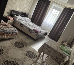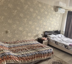 По телефону нам сказали апортоменты. В итоге оказалась комната, с общим туалетом и душем на три комнаты. Обошлось нам 5500₽ за сутки. В комнате были стены и потолок не очень чистые, спятнами бурого цвета. Были тапочки одноразовые. В туалете чисто. Балкон объединён с другой комнатой.