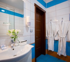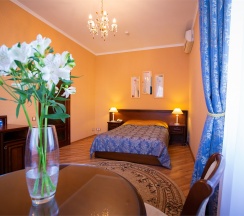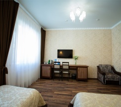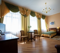Номера повышенной комфортности. Оформлены в элегантном классическом стиле. Придутся по душе ценителям романтики и тонкого вкуса. Белоснежный махровый халат и тапочки, набор для душа с изысканным ароматом создадут для Вас ощущение домашнего уюта и комфорта.