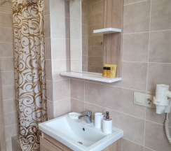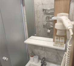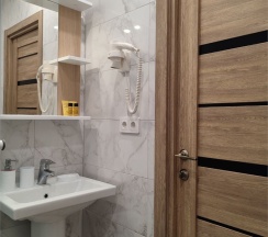 Гости пользуются отдельной ванной комнатой, которая находится в номере.