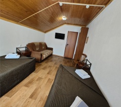 В коттедже есть кондиционер в номерах, можно с животными и другие удобства.