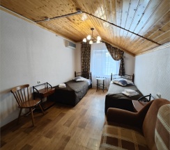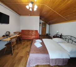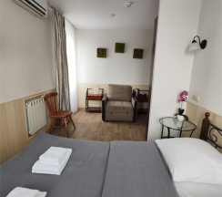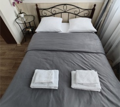 Очень понравился, по-домашнему уютный гостевой дом. Милые администраторы-хозяюшки. Есть все необходимое - полотенце, гель для душа в ванной, в комнате телевизор и вай-фай(мне было не нужно, не пользовалась).