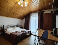 Номер просторный, тёплый, уютный. В номере две односпальные кровати, диван, шкаф, столик, прикроватные тумбы, телевизор, wi-fi, стул.